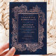 En modern blommigt för elegant i hand plockade faux guld illustration om chic och elegant marin blått vattenfärg med ram bröllopsinbjudan. Perfekt för elegant, chic bröllop.