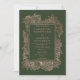 En modern blommigt för elegant i hand plockade faux guld illustrerar på jägare grönt med ram bröllopsinbjudan. Perfekt för elegant, chic bröllop.