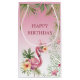 En söt blommigt rosa flamingo och exotisk löv på rosa gradientbakgrund