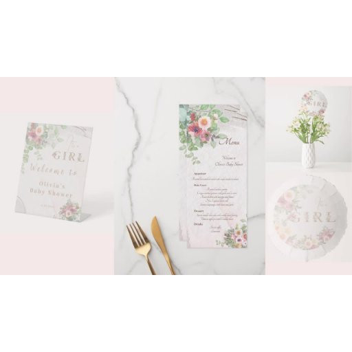 Fintvätt och elegant blommor som är perfekt för flicka duscha party. Matchande objekt som är tillgängliga i den här Flicka-inbjudningssamlingen för i Blommigt