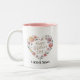 Låt varje kaffebrytning blomma med kärlek. Anpassningsbarna i Lycklig i Mor är vackert inlindad i ömtåliga blommigtar på utsidan, medan insidan är en överraskning - en elegant "Lycklig Mor's Day"-fras parad med en charmig hjärtform. Det är perfektens dagliga påminnelse om hur omhuldad hon är. Den här mugg-presenten är utformad för uppvärmning, komfort och hjärtfilt och blandar ihop tidlös design med personlig charm
