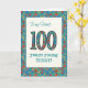 Ett åldersspecifikt födelsedagskort för en hundraårig vän med söt, med nummer 100 och gräns fyllt med ett färgstarkt blommönster på tealbakgrund. Blommönstret är en del av "Granny Print"-samlingen Posh & Painterly, från en handmålad papper kollage av Judy Adamson. Den här designen passar alla storlekar på gratulationskort.