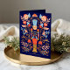Den skandinaviska folkkonstens skönhet och stil är inspirerad av, men med ett modernt och vintage. Djupa kontraster kombineras med glatt ljusa färger av rött, gult, rosa, blått, guld och persikor för att förmedla en glädjande känsla. Vår handledda nötköttskårare och vackra blommigtar är skickligt sammansatta för att skapa detta vackra visitkort för helgdag. Inuti har vi en vacker blommigt som ramar ditt personliga budskap. Alla teckningar och illustrationer är noggrant ritade av Moodthology, för att skapa vår unika minnesvärda Helgdag juldesign.