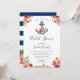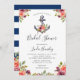 Navy Blue Rand Nautical Anchor Blommigt Inbjudningskort för möhippan.