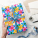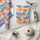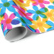 Lägg till en skarp beröring till alla presenter med det här mönstrade pappra omslaget. Den har en retro stil med överlappande blommor av hippie-daisy i intensiv gult, blått och magenta rosa. Hand plockade-grafiken är designad för att imitera den klassiska risografutskriften stil.retro stil med blommor av hippie-daisy i ljus gult, blått och magenta rosa.