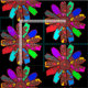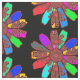Retro och asiatisk, inspirerad, färgstark blommigt med fet design på svart bakgrund.