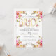 Dramatisk rosa blommar i varje hörn tillsammans med vattenfärgstommar som läggs ovanpå guld-tonstexten "Bride" gör en elegant påstående mot den vita bakgrunden med svart text framtill i den här Möhippan. Bakgrundsdesignen har en guld-ton polka dots mönster med en blommigt med vattenfärg i mitten. Sammansatt design efter Helgdag Hearts-design (reserverade höger).