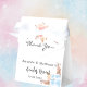 En vit chic bakgrund. Dekorerad med rosa och ro guld blommigt, pampasgräs. Med texten: Baby Shower och Tack är skrivna med ett modernt ro färgad-handskript i stil. Anpassa och lägg till ett namn och ett datum. En nalle pojke som håller en blå ballong och en nalle flicka som håller en rosa ballong.
