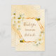 Ett tack för en sommartid Möhippa. Gult, vit bakgrund med en bikaka mönster. Med faux guld geometric ram. Dekoreras med lätt gult, grädda färgad tropiska blommigtar blommor, hibiscus och lycklig humla. Med texten: Tack och Bride to Bee skrivet med ett modernt handskript i stil. Mall för bruden namn och duschdatum. Brown brev. Tillbaka: Mall för tackkort och namn.