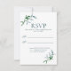 Den här OSA kort är designad med grenar med mjuk blommigt, i vattenfärgade nyanser av blå grönt, på vit bakgrund. Om du vill anpassa dig infogar du ditt svar efter datum i vår enkla mall och ersätter exempeltexten. Se till att du ser hela Watercolor Blue Grönt Blommigt Grenar Elegant bröllop i-samlingen.