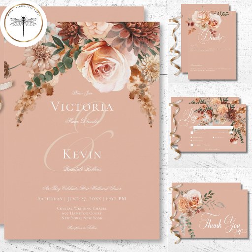Boho Peach & Rust Floral Peach Blush WeddingDesignad av Kathe Santillo