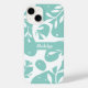 I den här telefonportföljsdesignen finns pastellblå abstrakter på vit bakgrund, med vit löv och punkter överst. Det här objektet innehåller också ett avsnitt i mitten som du kan anpassa med ditt eget namn, eller med namn på en vän eller familjemedlem till ge som gåva.