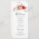 Bröllopsprogrammet för Blommigt för bränd Orange, höjdpunkt på hösten. Bröllopsprogram med bränd orange faller i blommigten med vackra handmålade vattenfärgade blommor och grön i rosröd nyans, terrakotta, bränd orange och med moderna kalligrafiskript. Faktiskt färgade vattenfärger, originalfärger. Matchande objekt är tillgängliga.