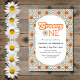 Blommigt för Bright Orange Daisy Groovy 1:a födels Inbjudningar