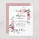 Budgeten Dusty Ro Rosa Blommigt Rosor och Eucalyptus Botanical Grey Watercolor Vår eller Summer Bröllop Inbjudningskort för möhippa - innehåller vackra och elegant manustypografi med moderna tropiska botaniska blommor och grönenergi för den speciella Bröllopsdagen firande.