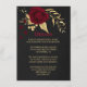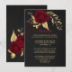 Romerska burgunska rödblommor i mörk och guld löv i svart detaljförslutningskort. Uppgifterna om glitter simuleras