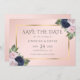 Blommigt för den Rosan i Modern Navy Blue Guld Spara Datumet