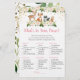 Den här eleganten Det som finns på dina kort är ett underbart sätt att sparka av roligten på din babyskor och garanterat att vara en stor slå! Ge dem bara runt under babyduschen där gästerna får roligt att gå igenom sina handväskor och checka av de artiklar de har från listan. Personen med flest poäng vinner! Utformningen har söta trädsdjur med rosa blommigtar och guld-folie.