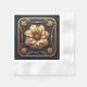 Konstruktion av en inre blomma i gyllene och vita toner, som visas inom ett cirkelformat konstnärligt motiv med prydnadsdetaljer, på en mörks bakgrund, med en blandning av sofistikering och konstnärliga uttryck.