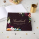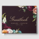 För bröllopsmottagningen den här elegant anpassningsbar blommigt bröllop guestbook har faux guld-skript med namn och bröllop-datum för att anpassa sig på en mörks burgundbakgrund som gränsar till blommor av rött, persikor och vitt. Designad av Susan Coffey.