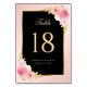 Elegant svartvitt och rosa blommigt-kort för bordsnummer med vattenfärg, rosor och gyldad grönsak. Matchande objekt är tillgängliga.