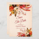 Vattenfärgsfärgad blommigt inslag på vacker höst färger, som är placerad över en rik blåslad elfenbensduk avslutat med höstens röda kalligrafi ...markera händelseinformationen i elegant, typsnitt som är en komplimang. Resultatet är en vacker designmatris som passar både för avslappnad och för mer formella bröllop-motiv. Para med matchande produkter för en komplett bröllop-svit.