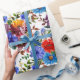Röd och blå vattenfärgsförpackad blommigt som är papper.