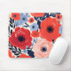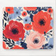 Mus Pad med färgen Modern Rött vitt blått Watercolor Blommigt har en modern design av rött och blåa blommor mot en vit bakgrund. Designad av Evco Studio www.zazzle.com/store/evcostudio