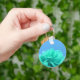 Blommigt för färgstark blå Grönt Nyckelring