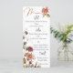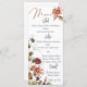 Den här menyn med vattenfärgers blommigt är en perfekt för att lägga till en tuff charm till dina gästers matupplevelse. Den här vackert designade menyn innehåller en mängd rosa daisy, faller vilda blommor och grönt och brunt löv i en varm vattenfärgsdesign. Menu ord längst upp är skriven i en varm, rustik kopparton, medan kursen visas i roligt och rustiskt svart typsnitt. Lägg till lite elegans i din mottagning med den här färgstarka och rustiska menyn.
