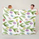 Produktdesignen har en mönster av färgstarka tulpanblommor i lila, rött, rosa, blått och gult. Den här botaniska illustrationen gör en elegant modern och unik stor filt - Gift-idé för födelsedag, Påsk, Mor-dagen, bröllop med mera!