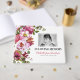 Minnesgäst i elegantens begravning bok med en klassisk vit och rosa bakgrund som kan ändras till vilken färg som helst, blommor i söt, ett foto av din älskade, och en mall för "In Loving Memory" som är enkel att anpassa.