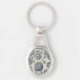 Blommigt för kantutjämning av blå blomma ovalt silverfärgad nyckelring