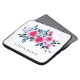 Modern och klassvis laptop sleeve-design med ljus rosa vattenfärgsfärg rosor, blått och grått-löv på vit bakgrund. Text kan ändras.