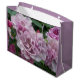 Ge är en gåva som presenteras i den här presentväskan med en fotobild av underbart, lila ro.