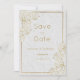 En elegant vit och guld Fransk blommigt snöre, ett utkast från tropiska guld löv med tryckt guld handskriven typografi. Dessa lyxinbjudningar till trendiget Bröllop spara datum är perfekten för alla brider- och brudgummievenemang i Bröllop. Anpassa den här designen med din information och ditt monogram först. Alla designer skrivs ut.