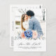 Fotot av marinblått rosa blommigt bröllop sparar datumet på vykortet med elegant bouquet av marinblått, royal blått, vitt, trädgårdsgrönt ro, vattenstånd och sage grönt eucalyptus löv. Kontakta mig om du behöver hjälp med anpassning eller om du behöver någon annan produkt med den här designen.