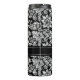 Den moderna metalliska blommigten i silver-dammen med diamanter mönster över svart bakgrund. Valfritt monogram