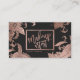 En elegant modern stilfull visitkort för makeupkonstnär med elegant skrivar räcker bokstäverstiltypografi på en mörk grå färgbakgrund med blom- inslag för den moderiktiga hand plockade med rosa guld för faux