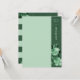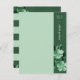 Den här chicen är en dekorativ gräns med plats för att lägga till ditt namn och en anpassningsbar hälsning. Den viktigaste punkten i utformningen är emellertid den känsliga illustrationen av blommigten av vintagen i skuggor av grönten. Kortets baksida har en samordnande blommigt rand mönster.