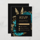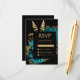 Den här eleganten har ett moody kort för inneslutning i bröllop OSA en lush, romantisk blommigt bouquet i turkos med guld faux foil och glitter foliage på svart bakgrund. Anpassa guld-färgad-texten i typsnitt snyggt på en svart rektangel. Kortets baksida är starkt svart.