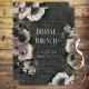 Den här möhippan brunch-designen har en svart mörk och marbleiserad bakgrund från silver med en vacker blommigt av anemoner, ro och andra blommor i den palmaste lavendern, vit, grönt och blek rosa. Skapat av Farmhouse Press.