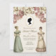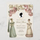 En vintage stil inbjudningskort för möhippan med ett tema från katastroftiden. Konstruktionen har rosa och vita orkidéer i överdelen, som omger en central oval ram som omger en silhuett av dam, som påminner om ReEmergency era porträtt. Vid grund illustrerade två på ett utmärkt sätt de kvinnor i den klassiska tidsåldern som var i kris, och detta är ytterligare en historisk karm. De bäror imperivavvänjningar (den ena är blå, den andra rosa och vit) och tillbehör som handskar och fläkt, vilket förbättrar vintagens elegans. Den första delen av texten är en ornerad kalligrafi som bidrar till den förfinade estetiken. På baksidan finns samma elegant ReEmergency dam. De kommer från mode tallrikar, från Ackermanns förvaringsinstitut från 1825. Rekommenderas för en fläkt av Jane Austen- eller Bridgerton-serien.