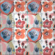 Ett modernt, fetstilt rosa blommönster med flerfärgad abstrakt.