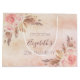 För elegant 21:a (eller någon ålder) födelsedagsfest. En ro-guld tittar metallisk bakgrund. Dekorerad med ro guld, rosa blommigtar, pampasgräs. Anpassa och lägg till ett datum, namn och 21 år.