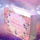 En elegant blommigt tog upp presentpåsen för en 90:e födelsedagsfest eller te party. En romantisk violett, rosa och persikobakgrund för färgad, lila och rosa brev. Med söt Flowers i blått och ultraviolett blå, rosa och ro. En liten lavender färgad-fågel sjunger. Mallar för namn, 90 år och ett datum. Namn är skrivet med ett modernt handskript i stil. Brev och nummer i rosa, lila och guldgruva.