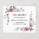 Budget Dusty Rosa och Eucalyptus Greenery Modern och Elegant Blommigt Watercolor Vår I har Flyttat New Home eller Ny adress Card - innehåller vackra och elegant manustypografi med moderna botaniska blommor och grönenergi för speciella New Home eller Nya adress firande.