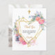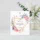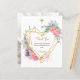 Ett modernt och elegantens baptism tack vare ditt kort. En chic vit bakgrund som dekoreras med en geometrisk hjärtformade ram, rosa blommigtar och grön bakgrund. En gyllene kor. Anpassa och lägg till ditt foto av barnet, tackkortet och namn.