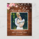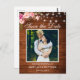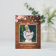 Rustic Wood Photo Förlovning Bröllop Meddelande Spara vykortet för datum inkluderar Watercolor Blommigt rosa ro och grönt. Vita Ram. Sträng Ljus.