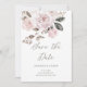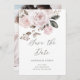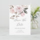 Den här romantisen och elegant bröllop sparar datumkortet med en muterad vintage som ser rosa bouquet med vattenfärgspennor och ro, och grått och löv i mörk, med vit bakgrund. Trendig grått-kalligrafi lägger till ytterligare klassisk stil. Kortets baksida innehåller ditt fullt-utfallsfoto.